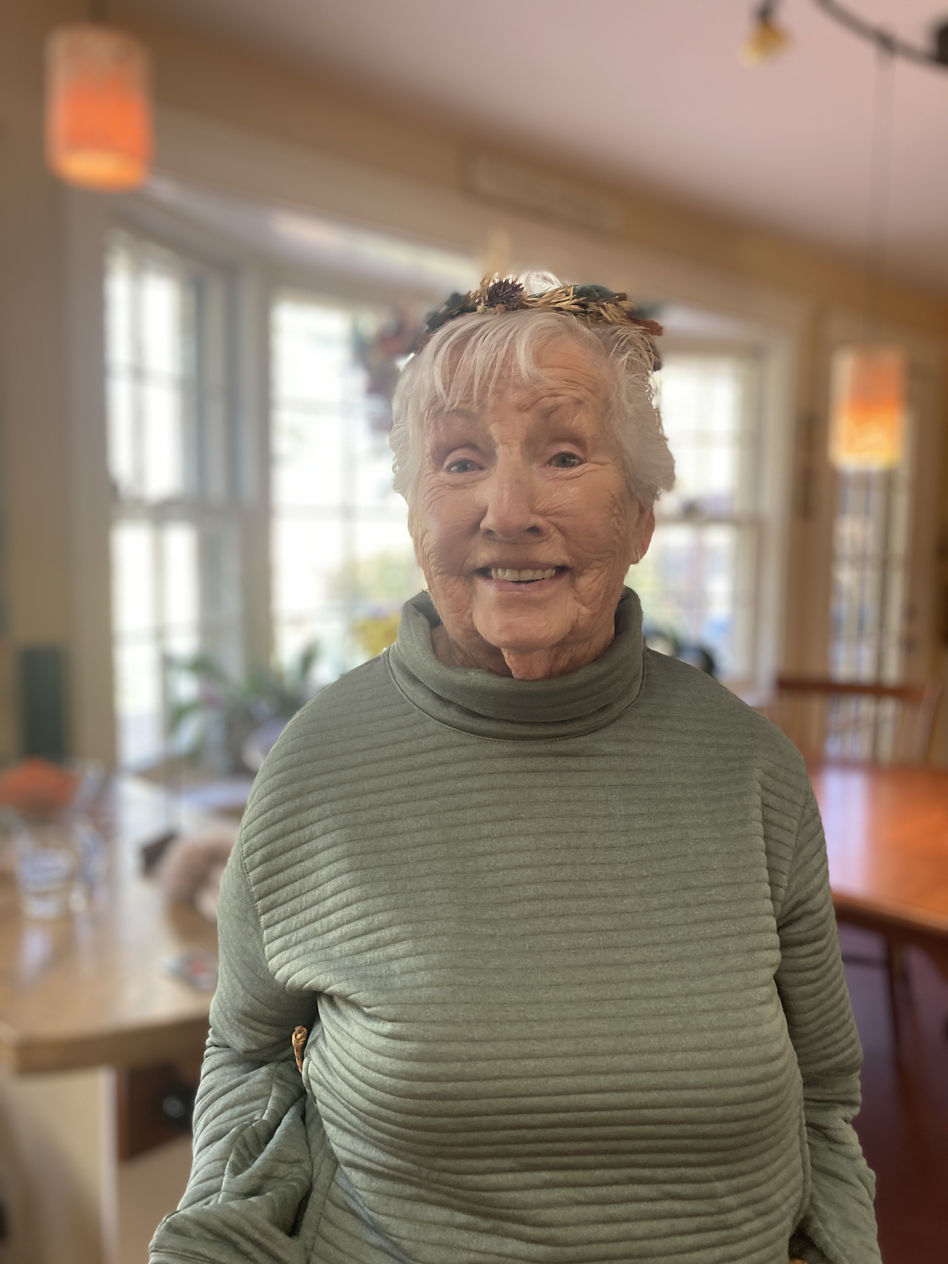 As all attendees arrived, the house filled with laughter, music, conversation, and crying. We learned things from one another, Maire and Lucy (the new TWITs) looked on and absorbed, Maire was in a bit of shock, fidgeting endlessly with one of Linda’s toys. Most of us were assigned to meals with the rule of those who cook clean and that’s it for the weekend. We sat on couches after dinner and watched videos of Nana that Linda had made, one being a one on one interview that brought a few tears to our eyes. I remembered Dad watching this once and wiping tears away, for the first time I saw him as someone’s little boy. Nana was the original Queen Wench or, as we decided today, the “Qwench”. We shared stories, reminisced, and slept like logs. On Saturday cousin Kristin drove a carload of us to the Connecticut River for a walk, unloading her trunk in seconds to make room. We had a healthy walk, more than I’ve done in a while. After, we shopped at Snow Farm, a learning center for the creative arts that sells their wares. Mom got very winded, a lung cancer survivor’s battle is never over. She insisted on powering through, sitting only when forced. Mary Paul will quite literally shop ‘till she drops. I did not get that gene, my focus being food. We all walked away with a treasure or two, I looked into their summer art program for Maire. She had crafted a dried flower crown with cousin Liz that morning, proving her skills and talents. Finally she had something to do, Liz has a knack for teaching. “You need to do a workshop, Liz.” I told her. She really does.