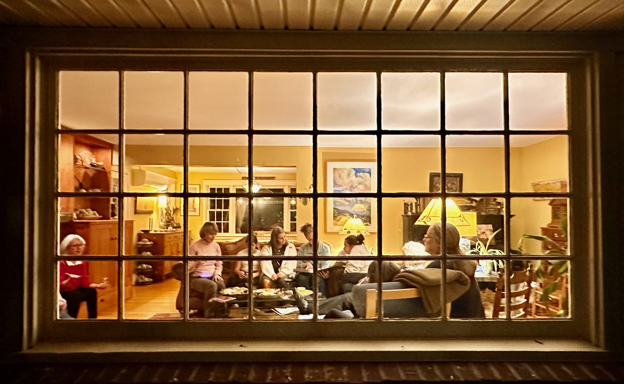 After the percolator finished this morning, we hit that thing hard and fast. Caffeine is what fuels many women I know and certainly these women in particular. Maggie, Liz, and I prepped breakfast and served others and ourselves. We walked again, it was colder today. We saw three bluebirds and an eagle, Maire held my hand. “Tell me about this podcast you’re starting.” Kristi asked me about a plan that’s in that works. “It’s going to be about strength and humor through adversity.” I told her. Maggie said “that sounds right up your alley, Kristi.” Kristi is a published author but, more importantly, an awesome human and one of the warmest people you will ever meet. I had wanted to try to record a conversation this weekend but food and joy distracted me, I gave up that quest. I told Kristi that she could be my first guest. She is doing a reading in Vermont today as a matter of fact. “I just want to keep the art of vocal storytelling alive. I’m going to be hosting a local spoken word night soon.” I told her. I am, by the way, so stay tuned. Homestead Harvest in Whitman has agreed to be my venue. Kristi encouraged me and agreed wholeheartedly to participate in any way. Thank you, Kristi. Consider yourself booked my sister from another mister.
